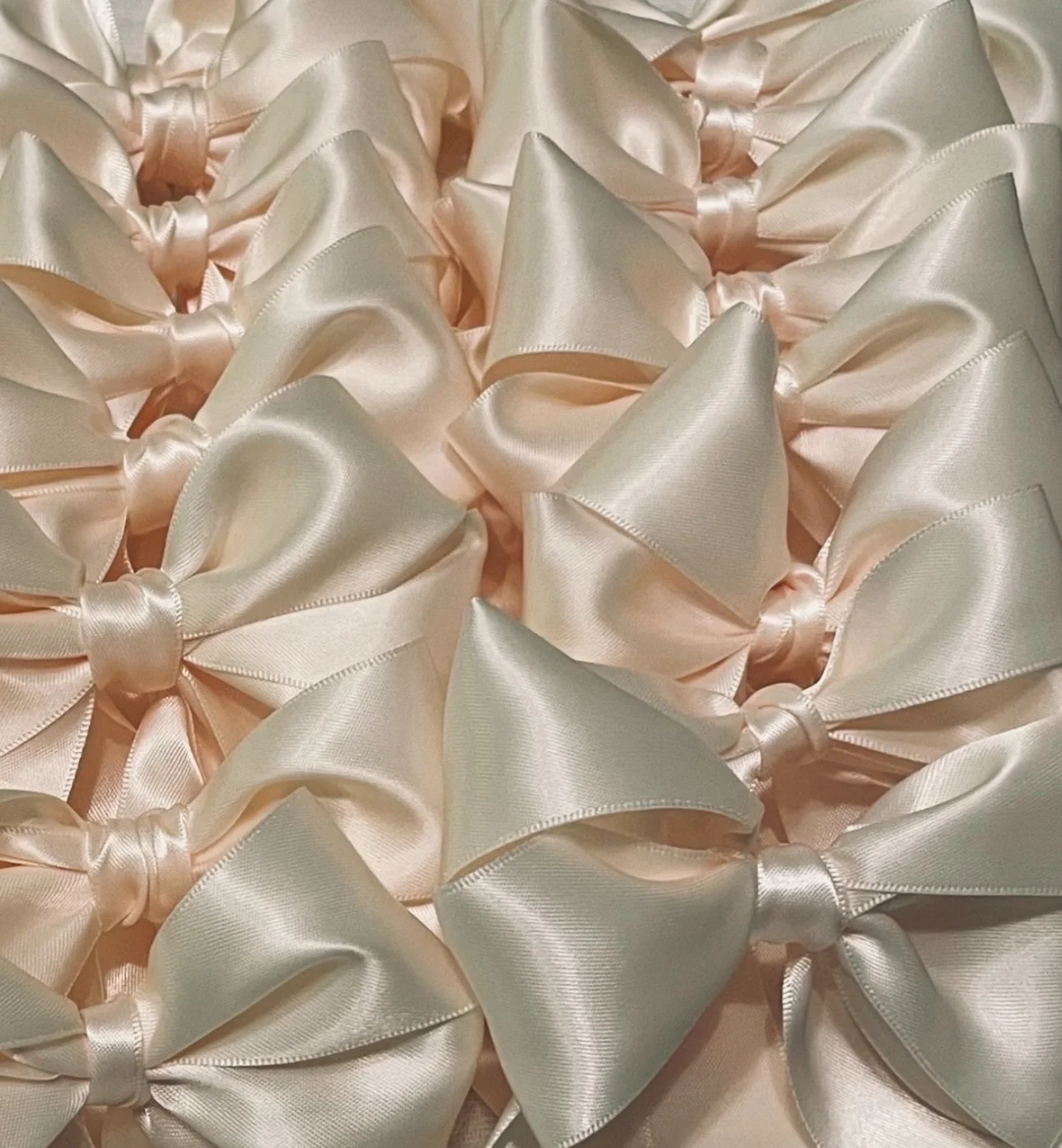 The Vanilla Wreath is hand-crafted by House of Holiday from luxurious ribbons of Satin.