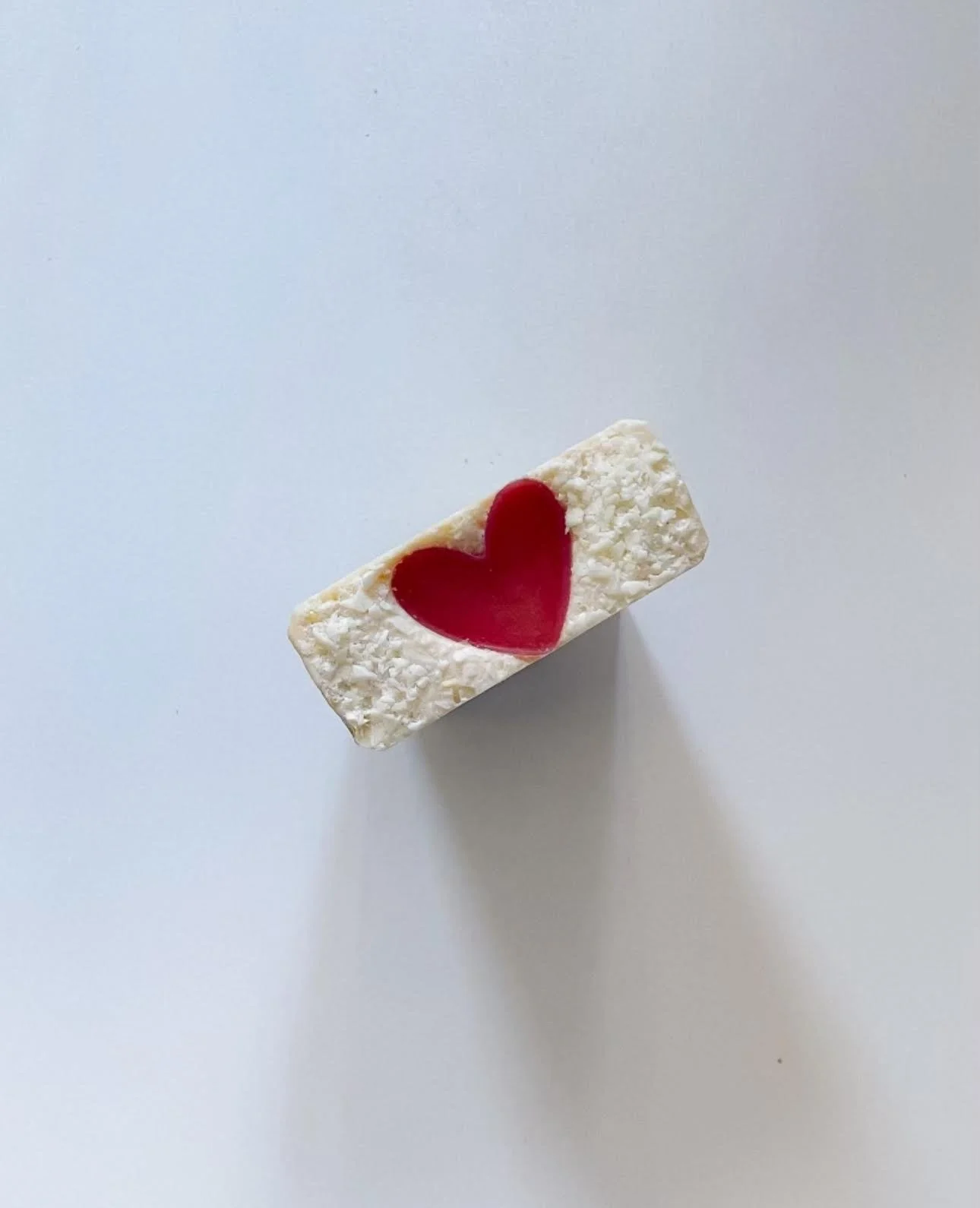 Glossy and jewel-toned jam peeks through the powdered-sugar-dusted cutout, like a vibrant piece of art.