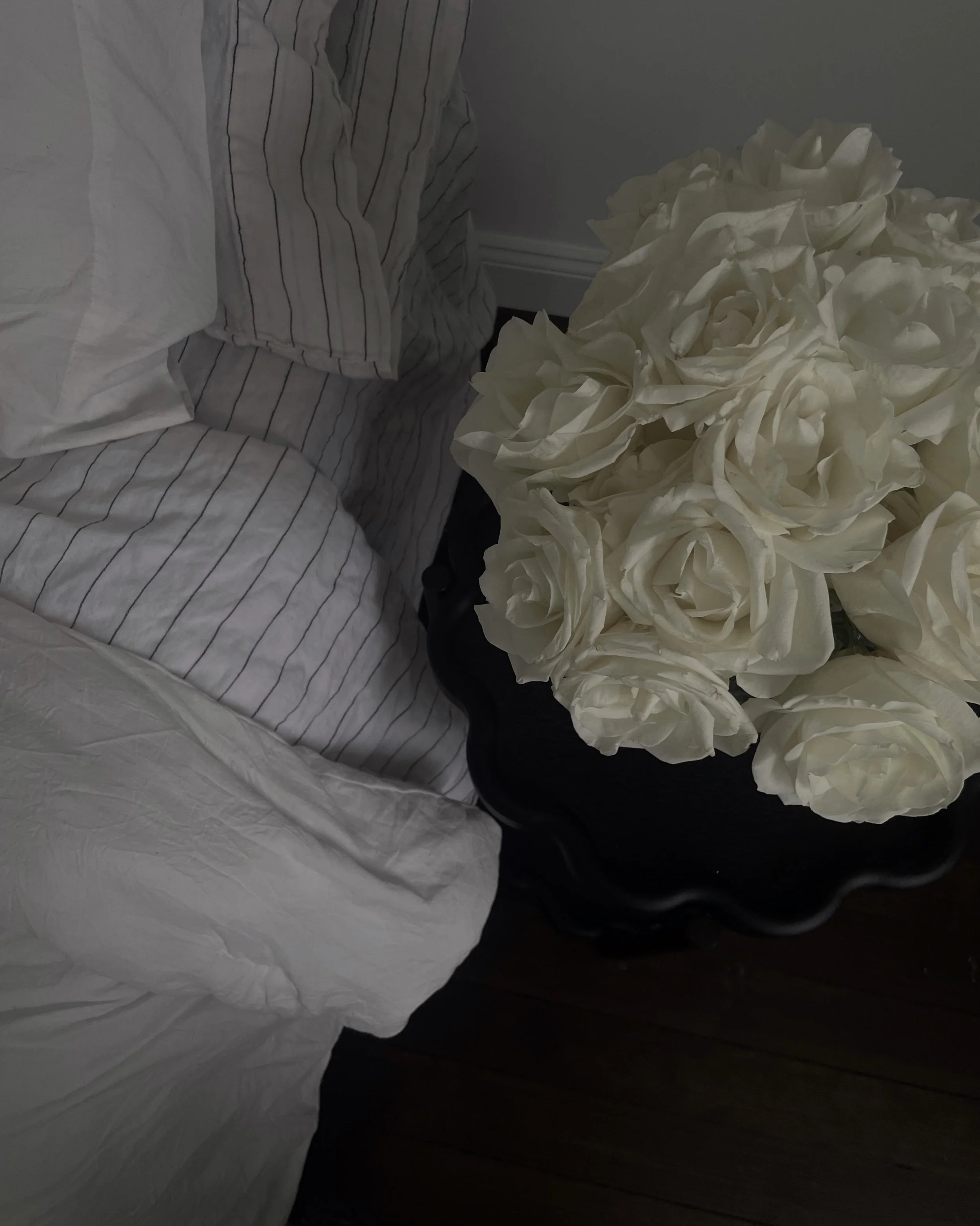 Fresh flowers bedside instantly elevate a room. No time to find fresh flowers? Use faux stems in a vase with baking soda, it will act like an air purifier for the room and give the same ambiance.