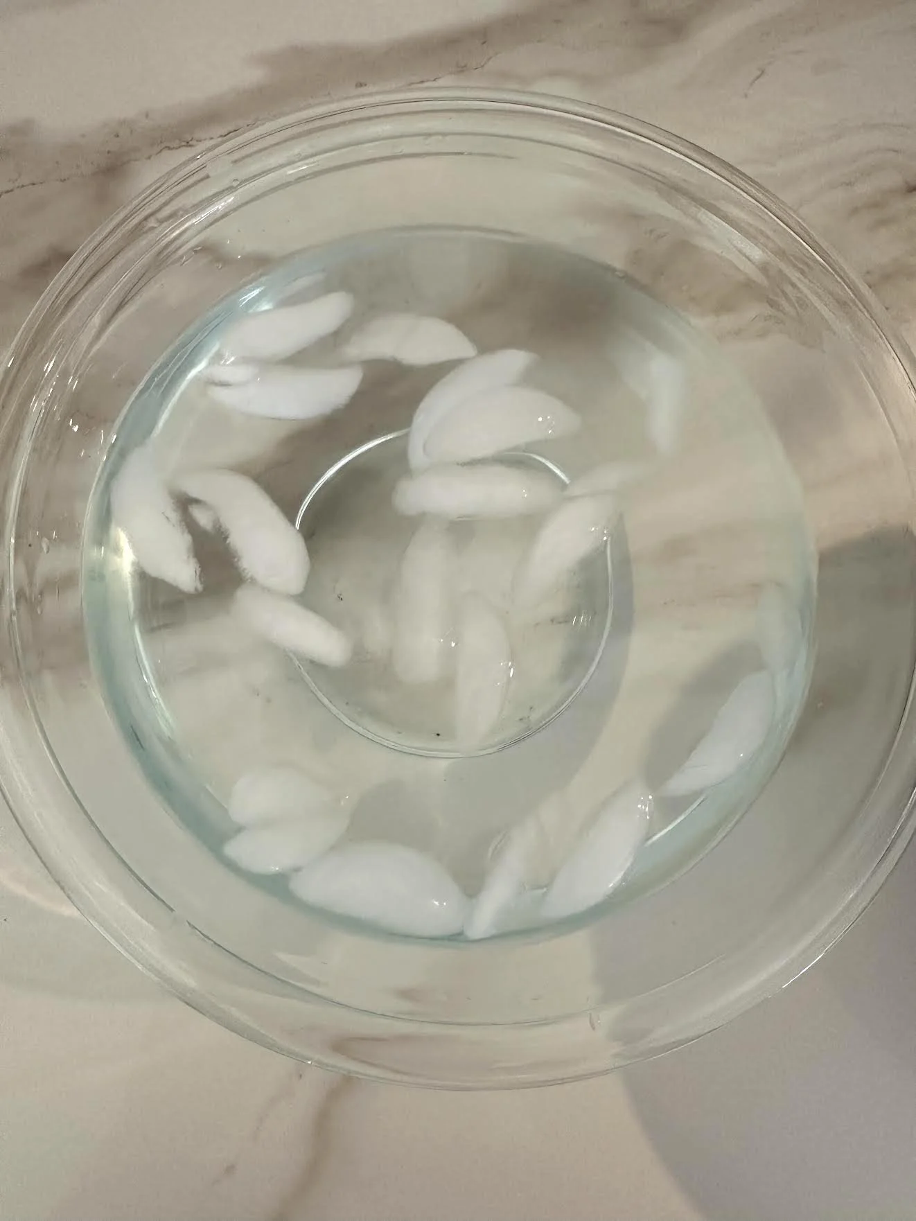 While eggs are cooking, prepare an ice bath. In a medium bowl, fill it with plenty of ice and water. When eggs are finished cooking, carefully transfer them with a slotted spoon into the ice bath. Set aside until completely cooled.