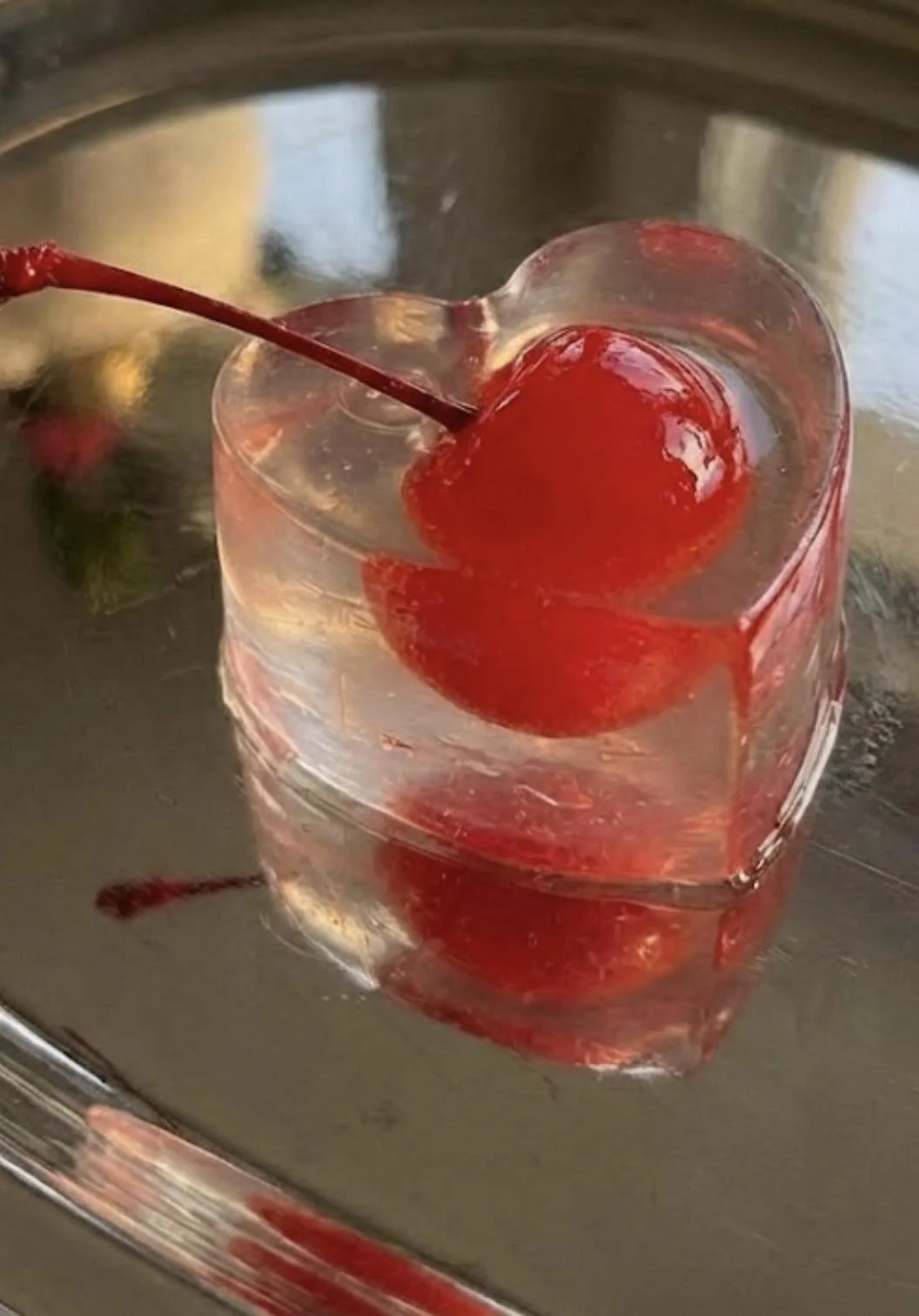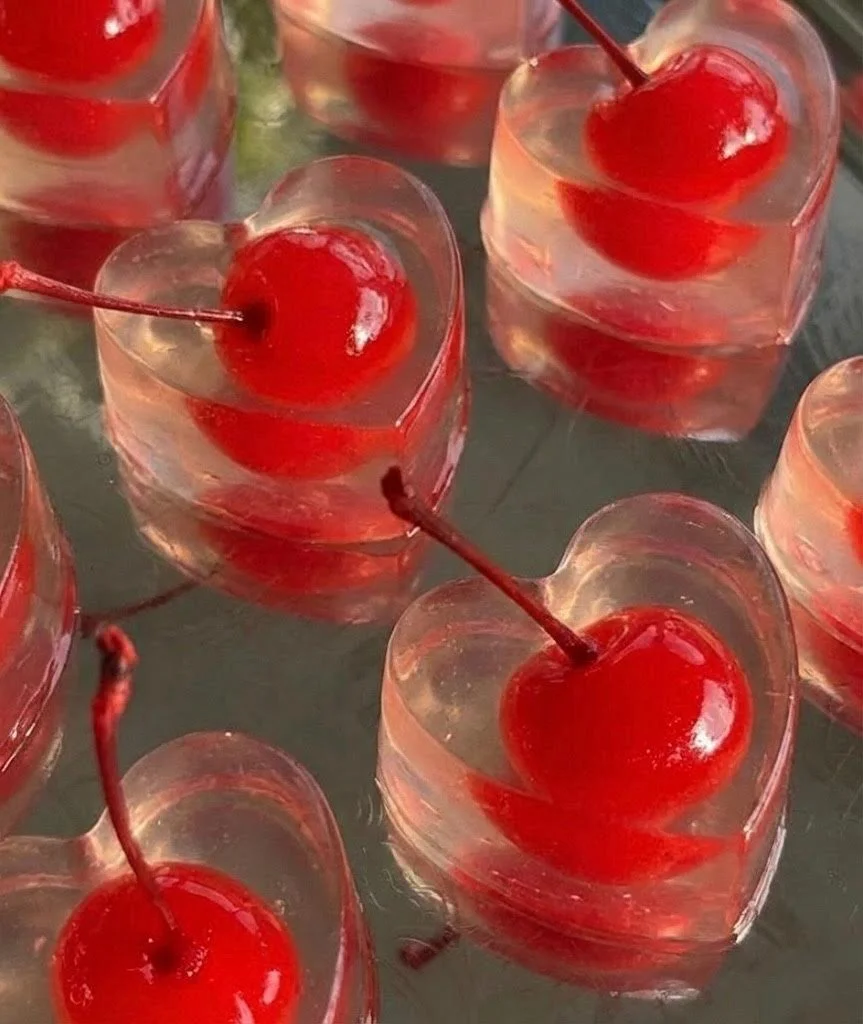 4. Remove from heat, stir in the vodka.5. Pour the liquid into your the hearts tray and top each heart with a maraschino cherry.