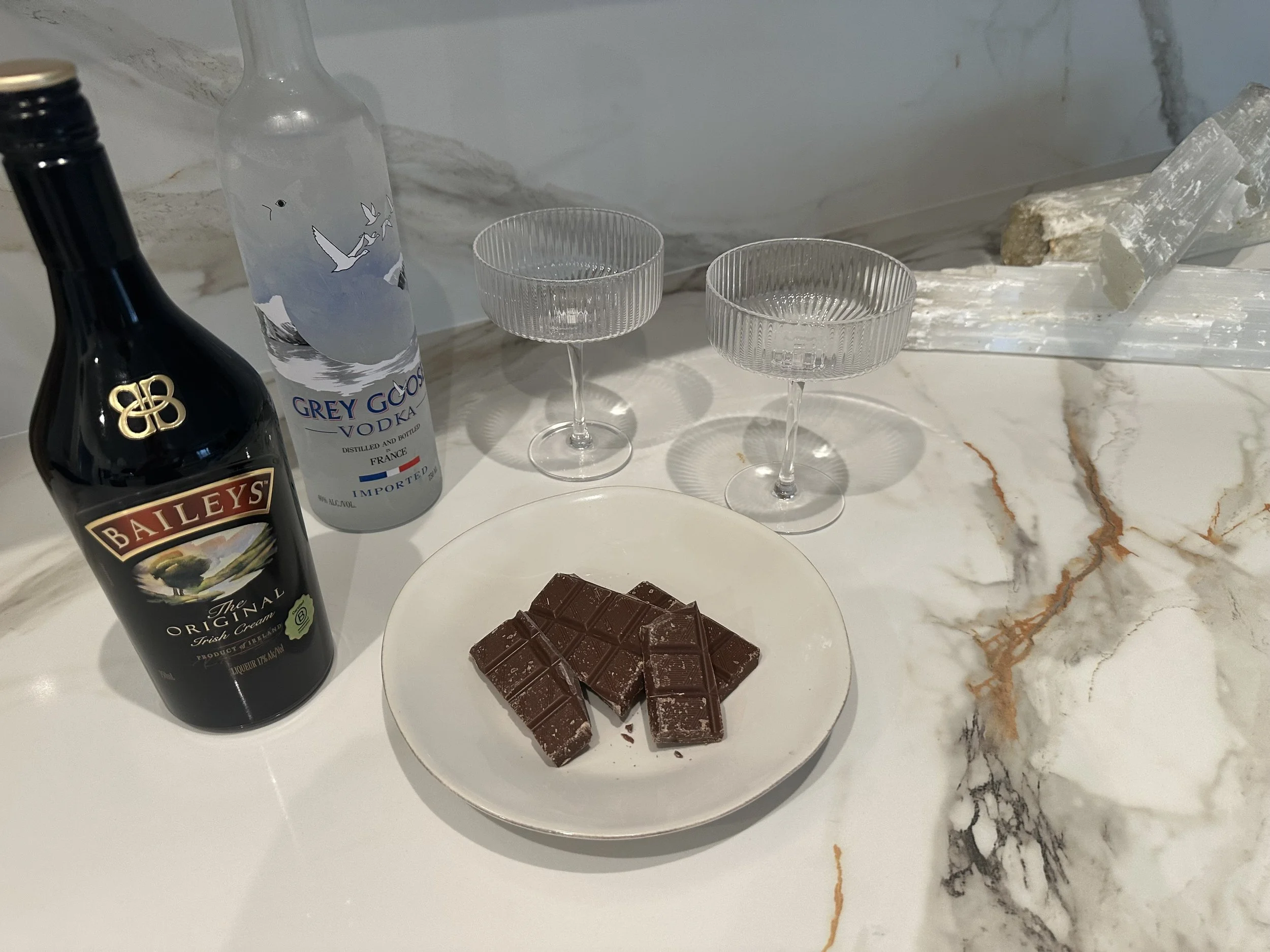 Divide martini between two glasses. Top with your favorite whipped cream and chocolate shavings and enjoy!
