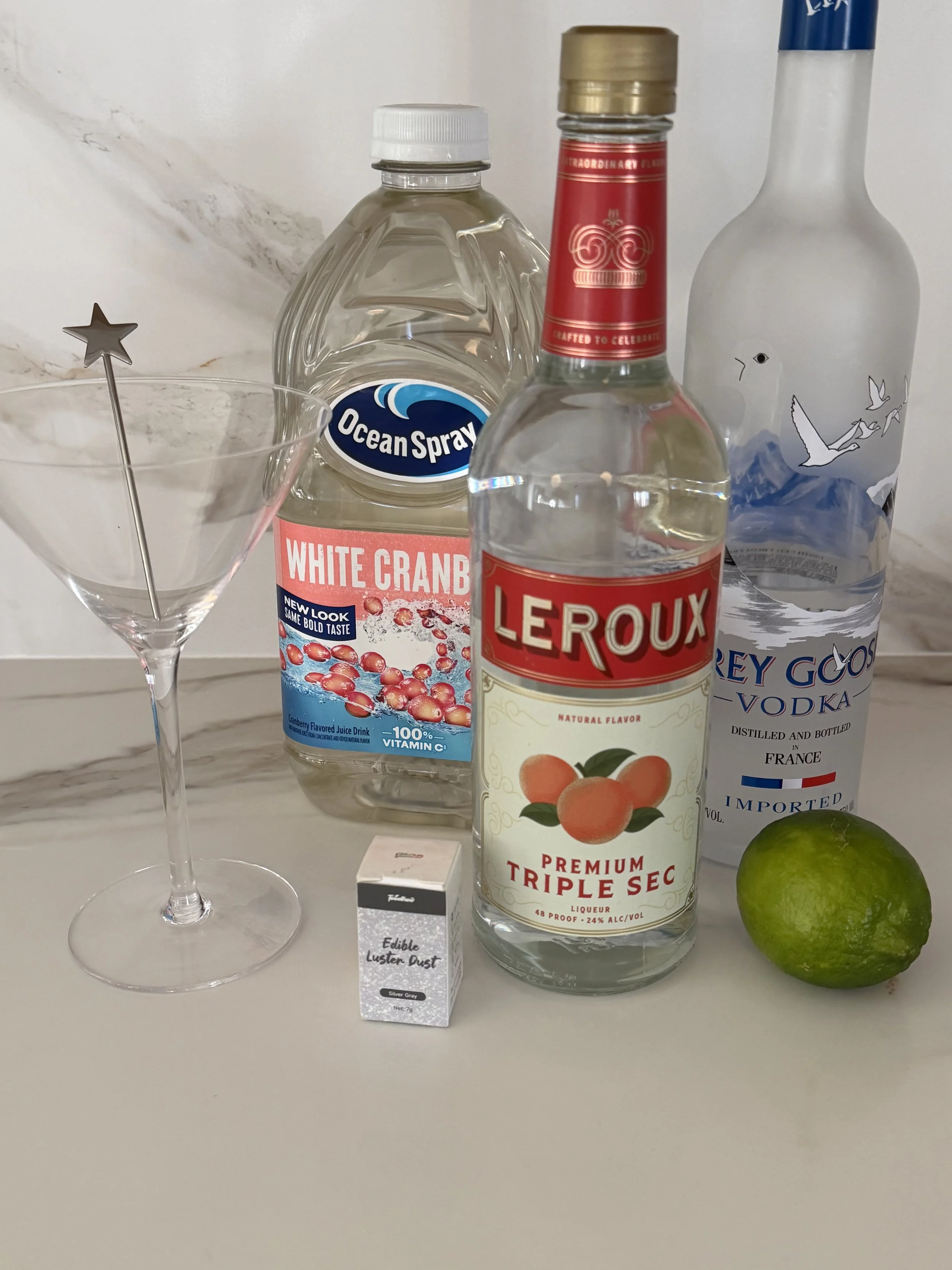 In a martini shaker add crushed ice, Vodka, triple sec, juice of 1/2 a lime and white cranberry juice.